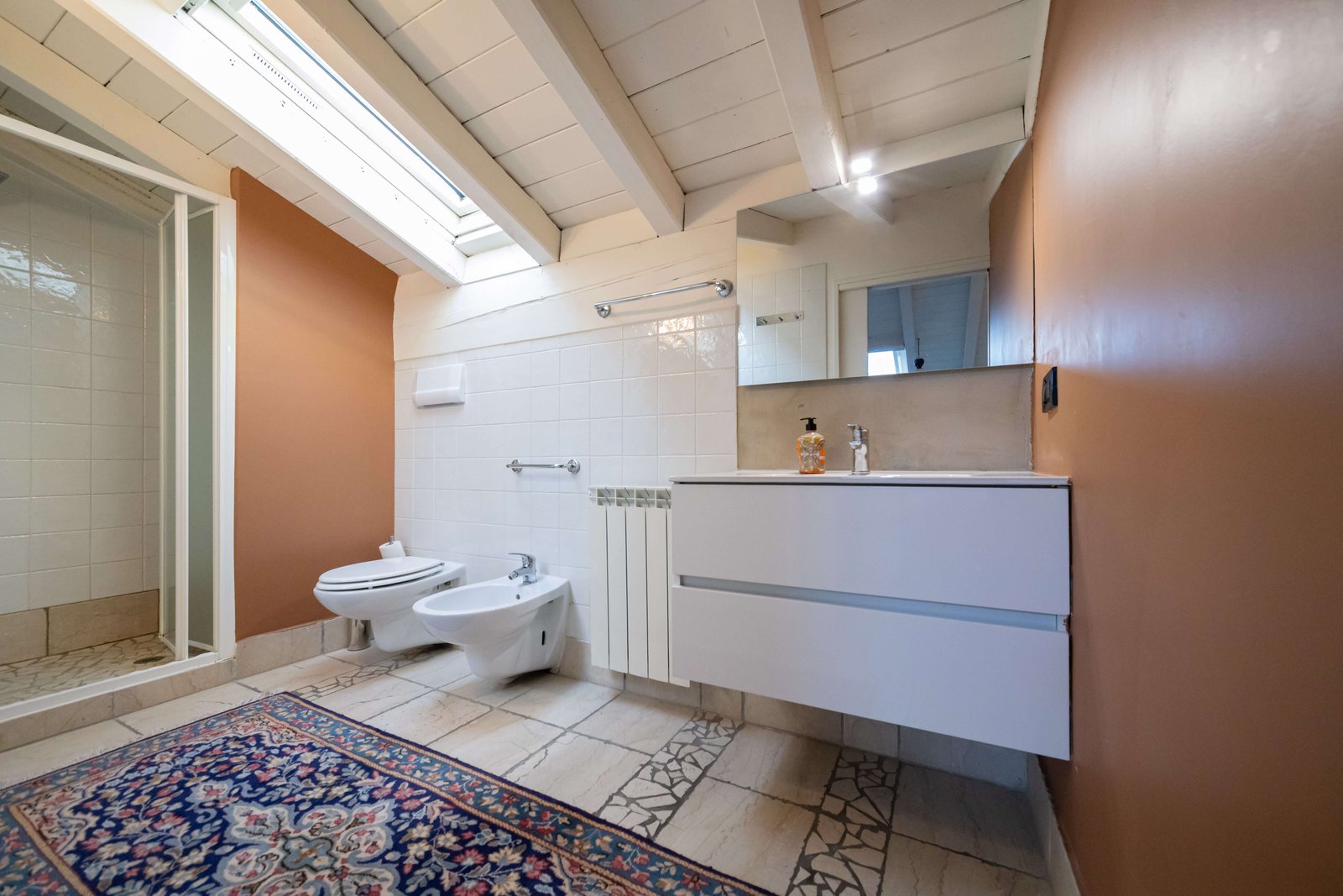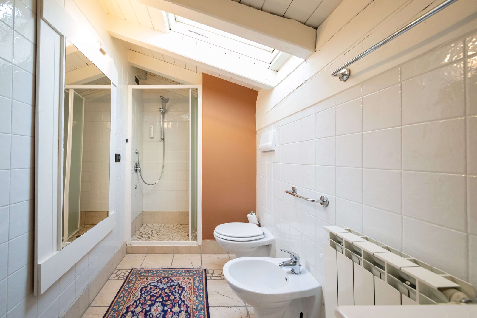 Bagno privato con doccia, asciugacapelli, prodotti da bagno in omaggio, WC, bidet.